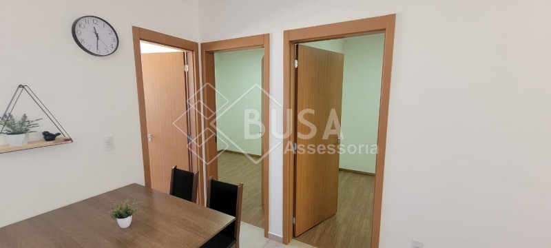 02 QUARTOS COM PRÉ INSTALAÇÕES PARA AR CONDICIONADO, SALA, COZINHA COM ARMARIOS PLANEJADOS E INTERFONE, BANHEIRO PISO FRIO COM REVESTIMENTO ATÉ O TETO E BOX.