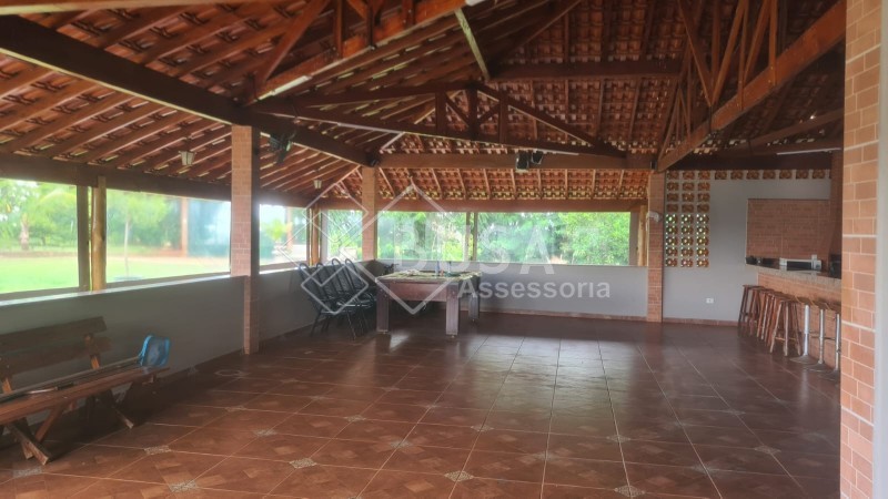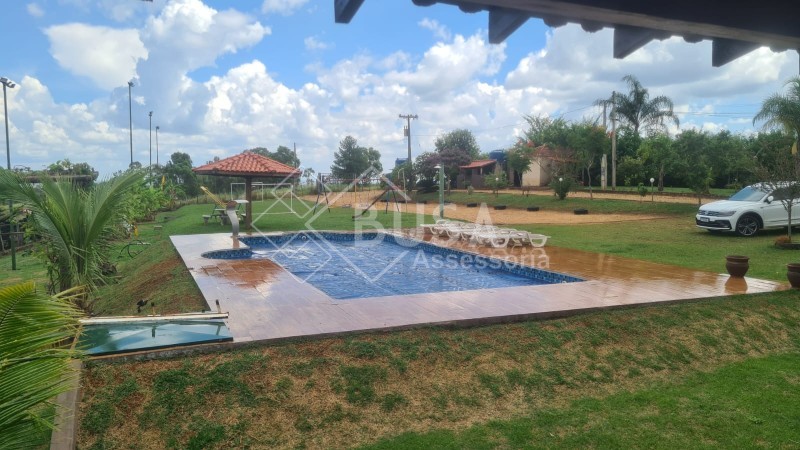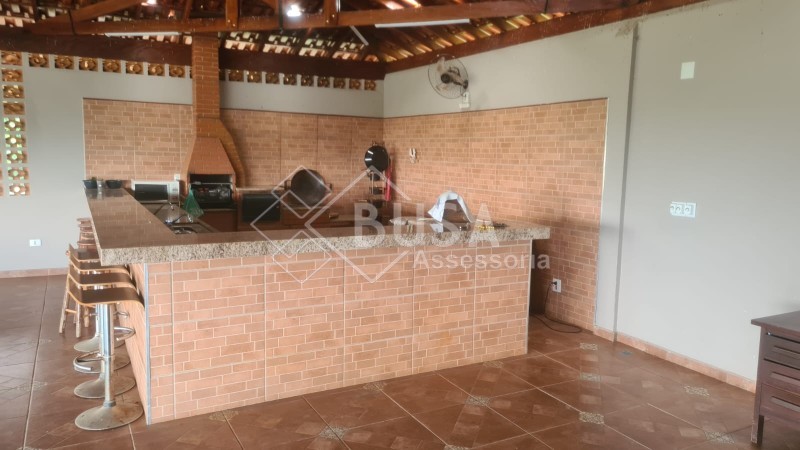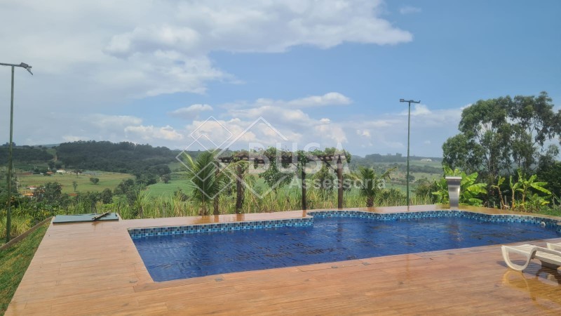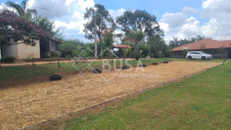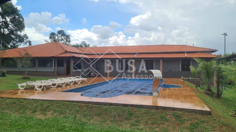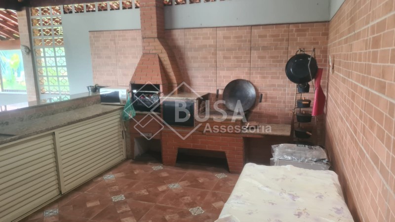 03 suítes com varandas voltadas para piscina, sendo uma com cozinha americana, Ventiladores de teto nas três suítes, Churrasqueira, Fogão e forno a lenha, Pomar, Campo futebol iluminado, Galinheiro, Poço artesiano com vazão de 8.000 litros por hora com acionamento automático, Piscina 10x5, Vestiários masculino e feminino, Lavanderia, Portão eletrônico, Área de churrasco e varandas fechadas com toldos, Parquinho para as crianças, Galinheiro, Igrejinha, pintura nova.
