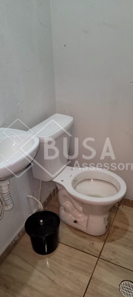 SALÃO MEDINDO APROXIMADAMENTE 5,00mts DE LARGURA POR 6,00mts DE COMPRIMENTO (30mts), PISO FRIO, FORRO GESSO, 02 PRATELEIRAS FIXAS PAREDES LATERAIS, ILUMINAÇÃO LEDS E PLAFONS, COM ÁREA ANEXA DE APRÓXIMADAMENTE 5,00mts DE LARGURA POR 4,00mts DE COMPRIMENTO (20mts), CONTENDO 01 DISPENSA, 02 BANHEIROS, COBERTURA TELHA GALVANIZADA COM 01 EXAUSTOR, PISO FRIO.